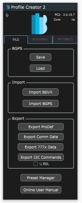 - Import BGVX – Import DPS 1st generation profiles created in DPS Profile Creator 1.x.